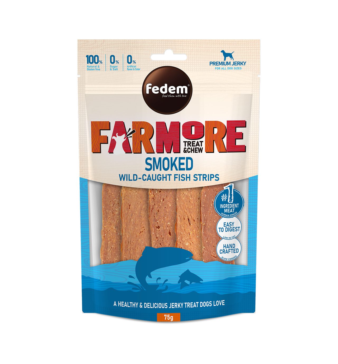 فيدم فارمور جيركي للكلاب - شرائح سمك مدخن بري الصيد 75 غرام