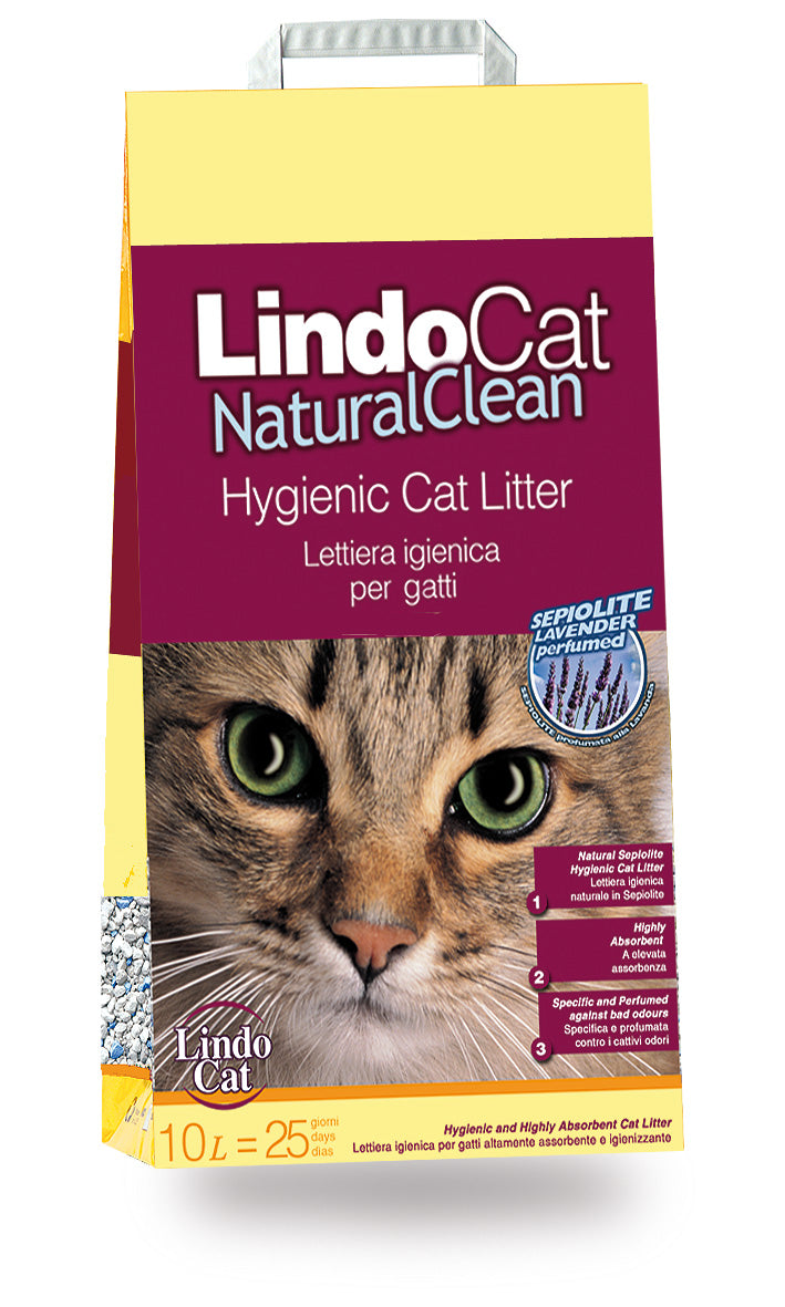 LindoCat Natural Clean is a litter made of 100% white sepiolite, a natural clay with enhanced liquid and odour absorption properties. The pleasant lavender scent, together with the beneficial properties of argan oil, make LindoCat Natural Clean the ideal litter for long-haired cats. Light and easy to carry.